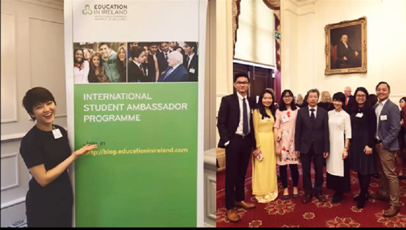 A:Trong thời gian học ngoài làm Đại sứ cho sinh viên DCU mình còn tham gia một hoạt động nữa, cực kỳ hay và mình muốn đề xuất với các bạn, đó là chương trình Đại sứ Sinh viên Việt Nam của Education in Ireland (EI) – bộ phận quảng bá giáo dục của chính phủ Ireland ra thế giới. EI thường tổ chức các buổi giao lưu gặp gỡ giữa sinh viên các trường với nhau, gặp mặt các bạn sinh viên Việt Nam là đại sứ sinh viên từ Anh sang, ngoài ra còn cho mọi người đi tham quan nhiều nơi ở Ireland ví dụ như Cliffs of Moher, Wicklow… Đây đều là những dịp rất tốt để gặp gỡ và kết nối. Điều này cũng sẽ giúp ích nhiều cho chuyện tìm việc về sau.