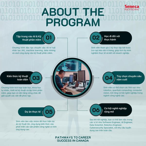 Với môi trường học tập quốc tế và đội ngũ giảng viên là các chuyên gia trong ngành, Seneca Polytechnic cam kết mang lại cho bạn nền tảng vững chắc để xây dựng sự nghiệp thành công trong lĩnh vực kỹ thuật phần mềm. Cùng khám phá và chinh phục ngành công nghệ đầy tiềm năng này!