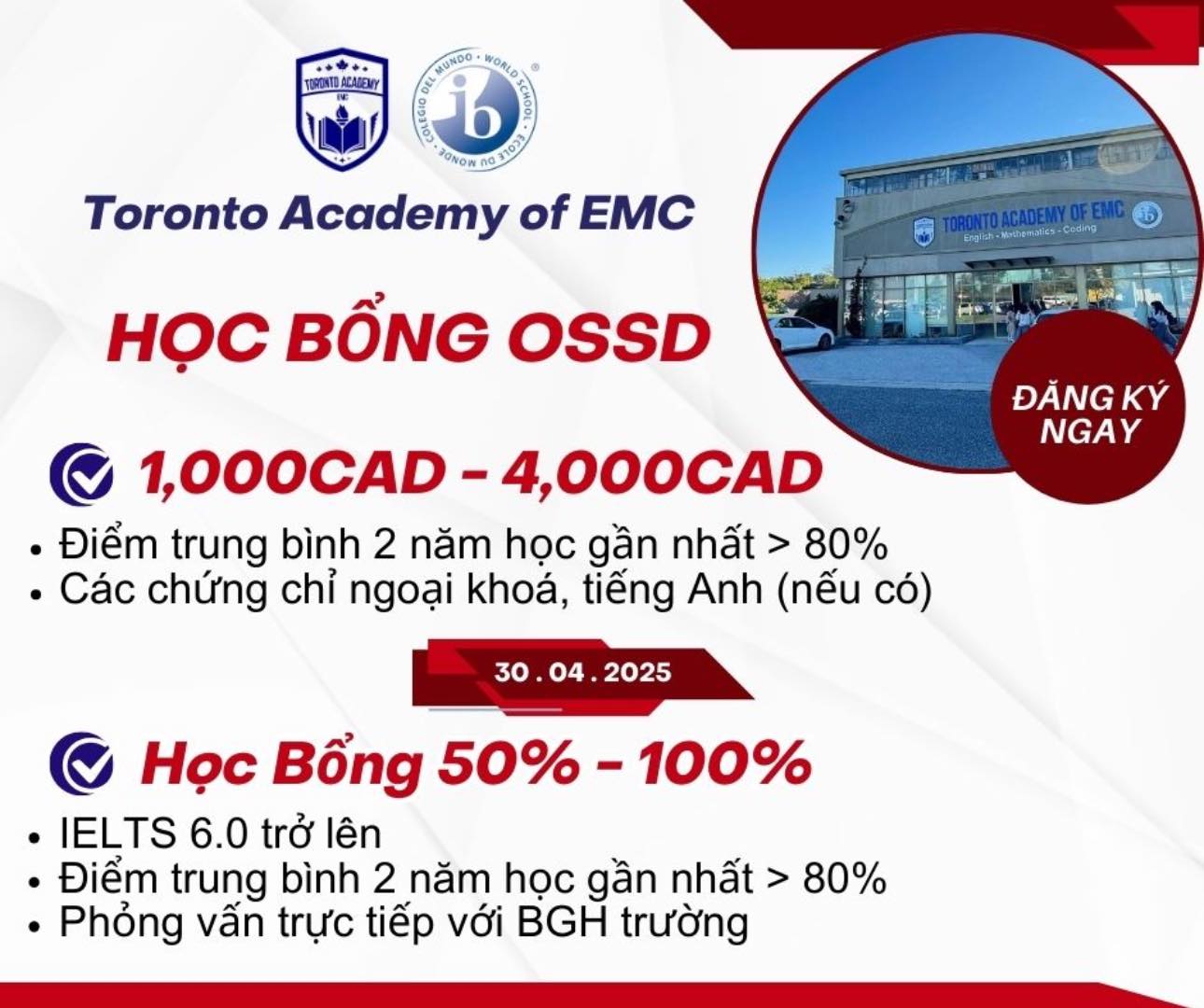 Cơ hội học bổng lên đến 100% tại trường Toronto Academy of EMC - Canada