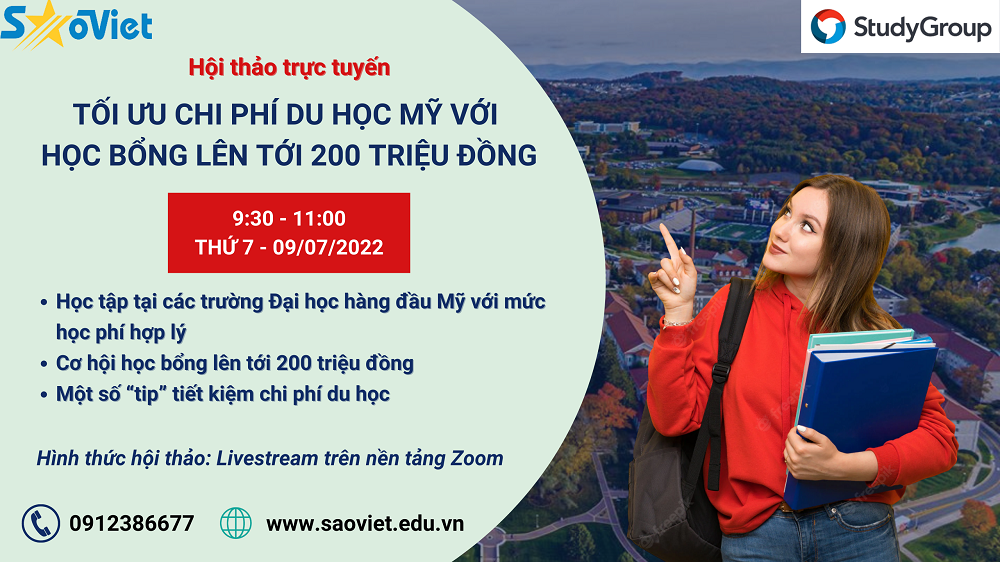 Đó cũng là băn khoăn, trăn trở của rất nhiều phụ huynh khi muốn chọn Mỹ là điểm đến du học cho con em mình. Hiểu được điều này, Sao Việt đã kết hợp với Tập đoàn giáo dục Study Group (Một tập đoàn có uy tín trong lĩnh vực Giáo dục) tổ chức Hội thảo trực tuyến: