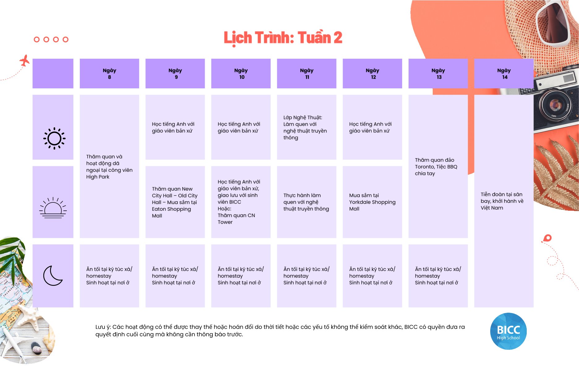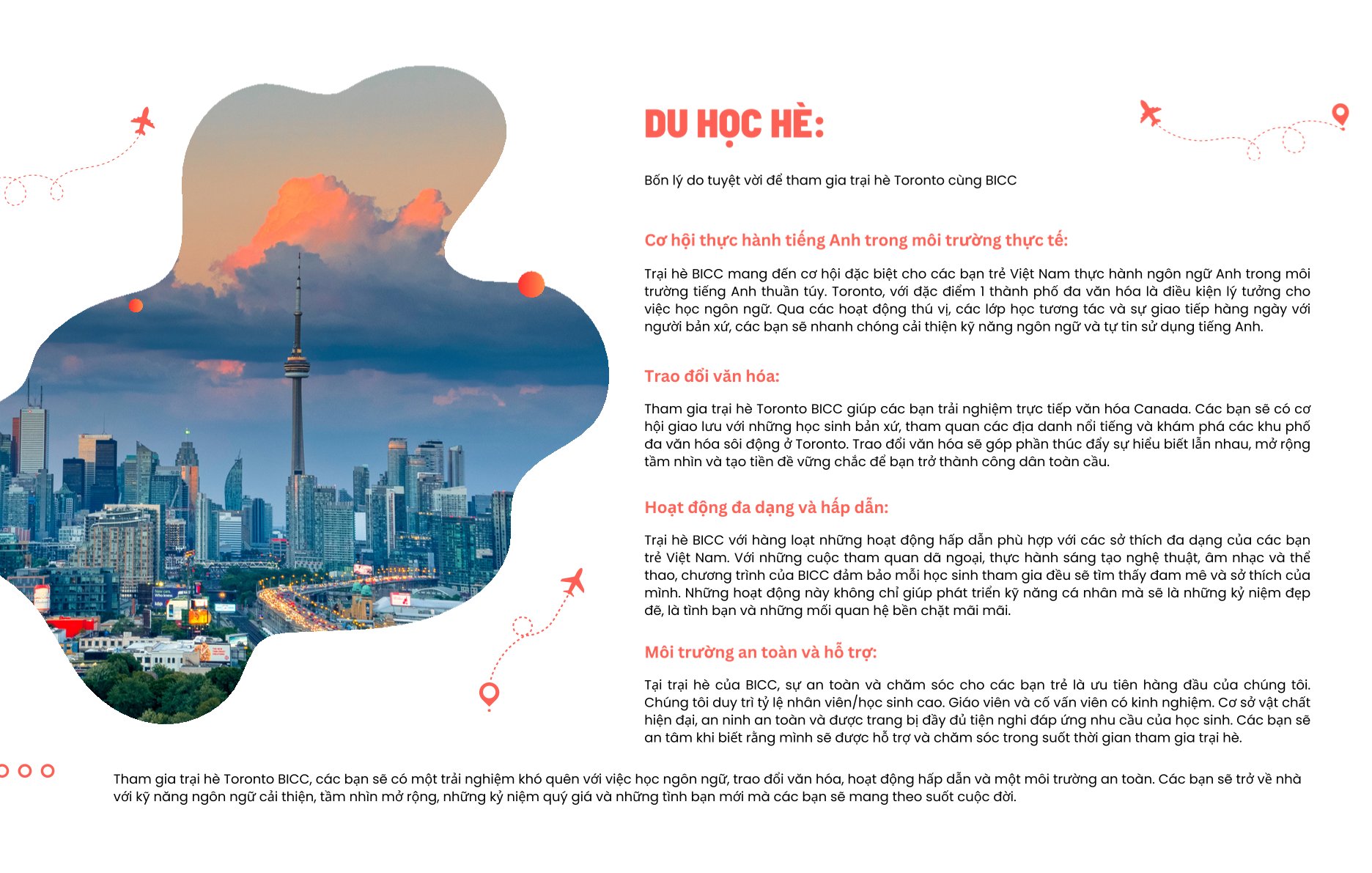 Trại hè BICC Canada 2026 được tổ chức thường niên vào tháng 7 và tháng 8, mang đến cơ hội tuyệt vời để học sinh:
