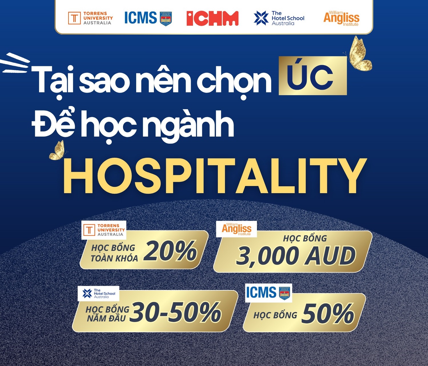 Úc dẫn đầu về đào tạo Hospitality với chương trình thực tiễn, thực tập hưởng lương tại các tập đoàn lớn như Marriott, Hilton. Các trường chất lượng như The Hotel School, Blue Mountains (BMIHMS), William Angliss Institute, Torrens University, ICMS v..v...sẽ trang bị kỹ năng để bạn chinh phục thị trường toàn cầu.