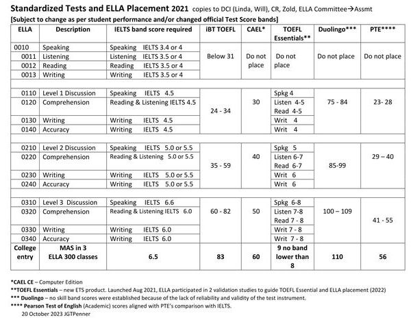 Nếu như trước kia trường chỉ chấp nhận Duoling tối thiểu 110 và PTE tối thiểu 56 để xét vào khóa học chính thì bắt đầu từ tháng 12/2023 Douglas sẽ chấp nhận điểm Duoling từ 75 tới 109 hoặc PTE từ 23 tới 55 để xếp lớp tiếng Anh – ELLA program cho sinh viên quốc tế.