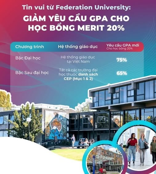 Đại học Federation University - Úc chính thức giảm yêu cầu GPA cho học bổng Merit 20%!