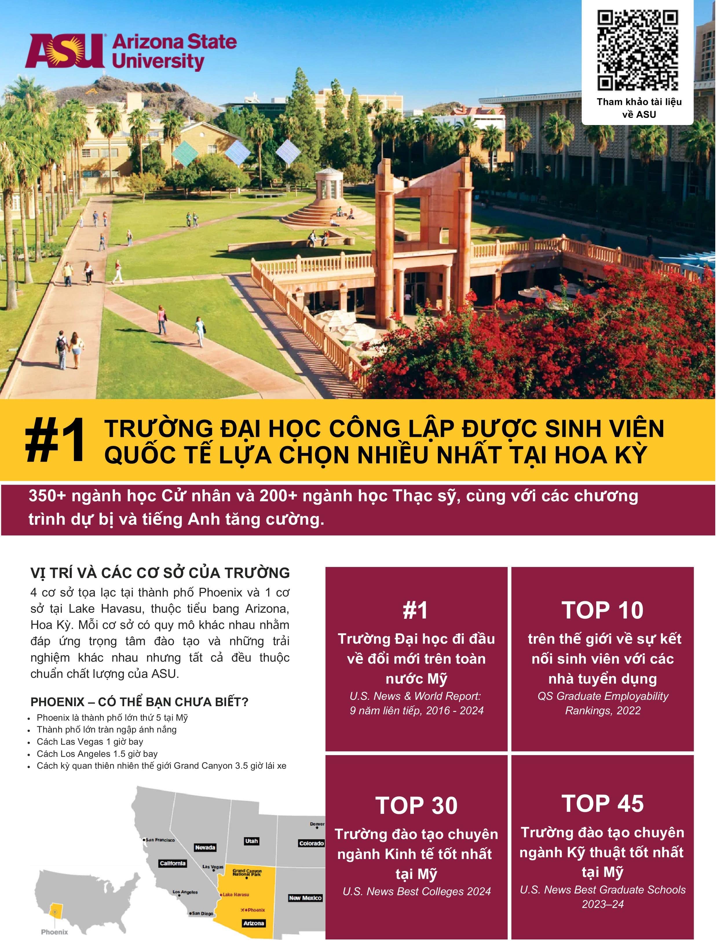 Arizona State University (ASU) hiện đã mở đơn cho tất cả các kỳ nhập học 2025. 𝐌𝐈𝐄̂̃𝐍 𝐏𝐇𝐈́ 𝐏𝐇𝐈́ 𝐆𝐇𝐈 𝐃𝐀𝐍𝐇 và hỗ trợ tận tình quý đối tác cũng như học sinh và phụ huynh xuyên suốt quá trình tư vấn và nộp hồ sơ.
