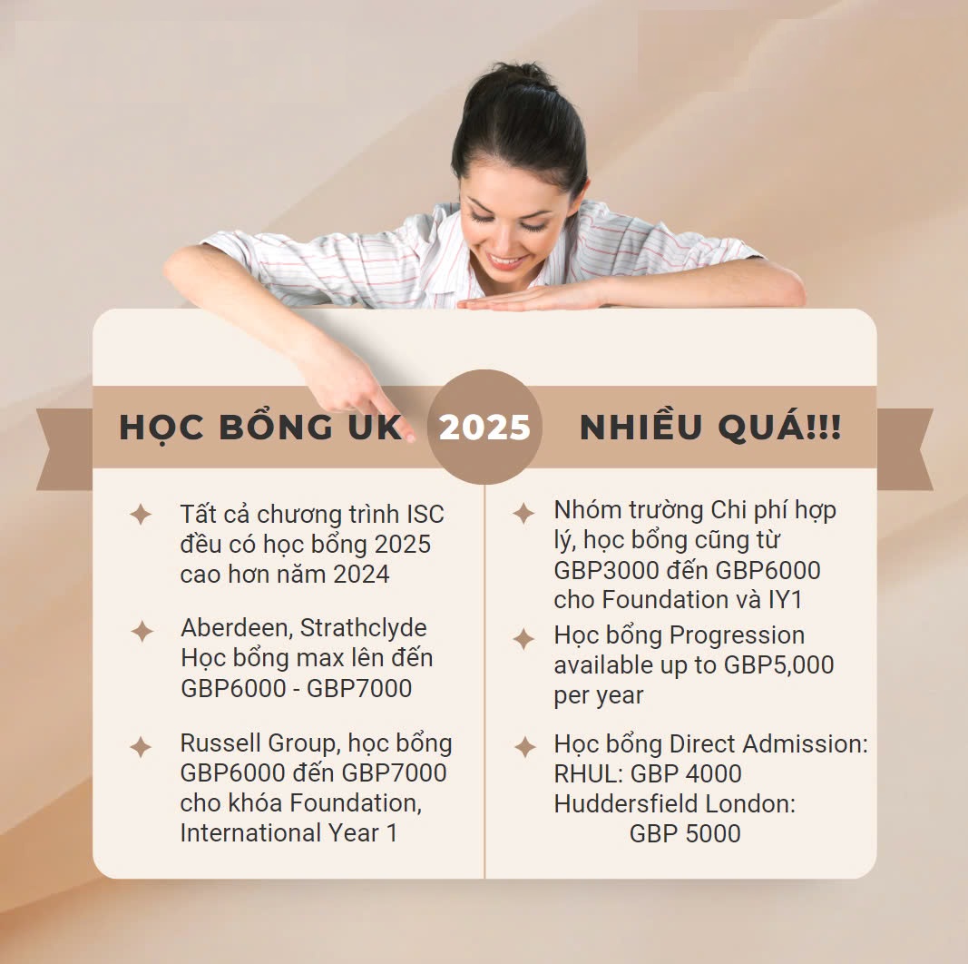- Học sinh muốn đi Direct có thể chọn Royal Holloway University of London (UG&PG) hoặc Huddersfield London (PG)