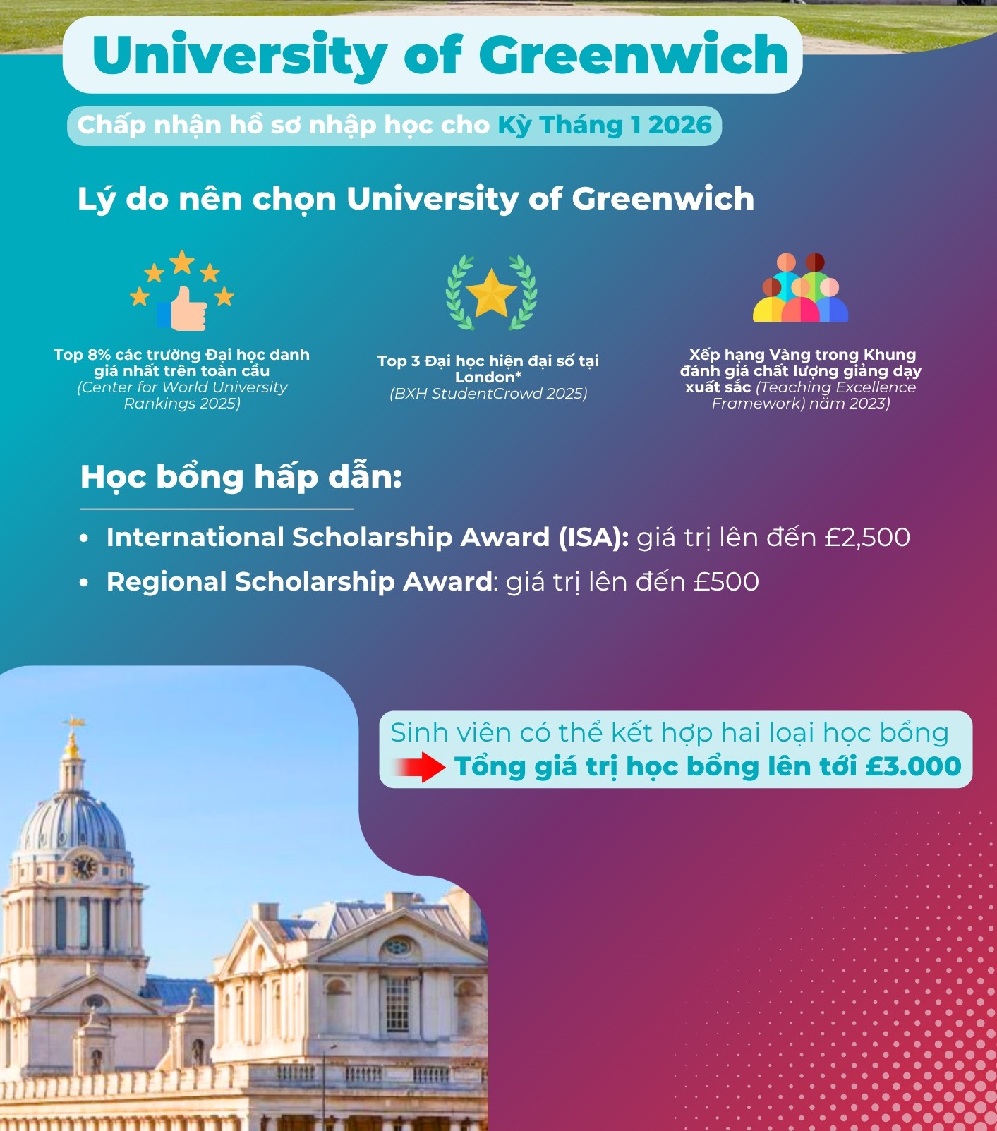 University of Greenwich - Anh chính thức mở đơn kỳ tháng 1/2026