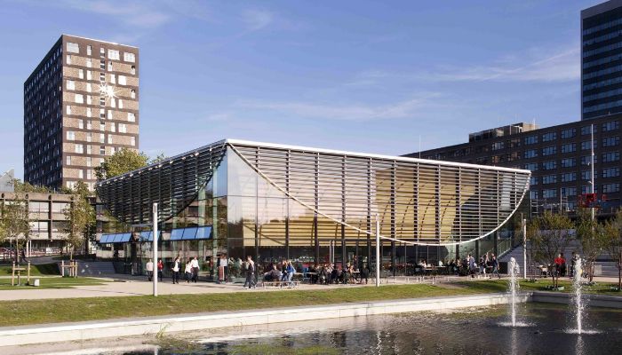 Trung tâm đại học Erasmus Rotterdam nằm ở cơ sở Woudestein cách trung tâm Rotterdam 15 phút đi xe đạp. Đây là một nơi sầm uất và năng động. Việc đi lại rất thuận lợi và gần hệ thống ga xe lửa Rotterdam Centraal mới xây. Nằm rải rác khắp trường là các máy ATM của nhiều ngân hàng lớn của Hà Lan. Cả khuôn viên trường như một khu phố sinh viên thu nhỏ. Sinh viên dễ dàng tìm thấy các quán cà phê, tiệm bánh, nhà gym,… Các thực phẩm và đồ uống cho sinh viên đều được qua phê duyệt của nhà trường để đảm bảo độ dinh dưỡng cao.